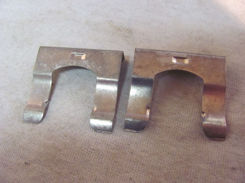 1 pair of very nicely restored Camaro Chevelle Nova door lock retainer clips stamped M with a line underneath.