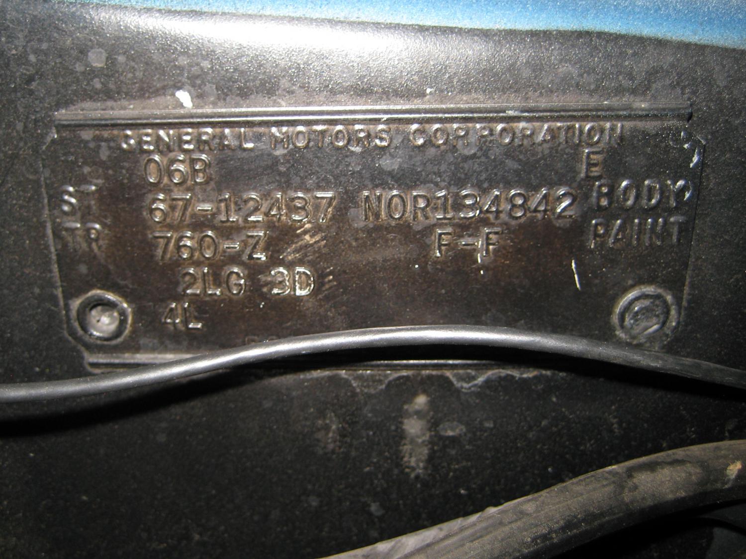 This Marina Blue 67 Z/28 was purchased new at Hall Chevrolet in Clarksville MD by Harry Zink. It is an unrestored car with 42K miles and still has its original drivetrain. This car has an M21 with 4.10 gears and came without a radio. It is #4 in the '67 Z/28 Registry. It sold for $172.5K.