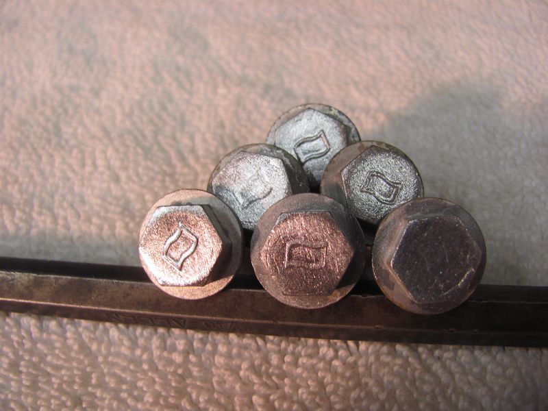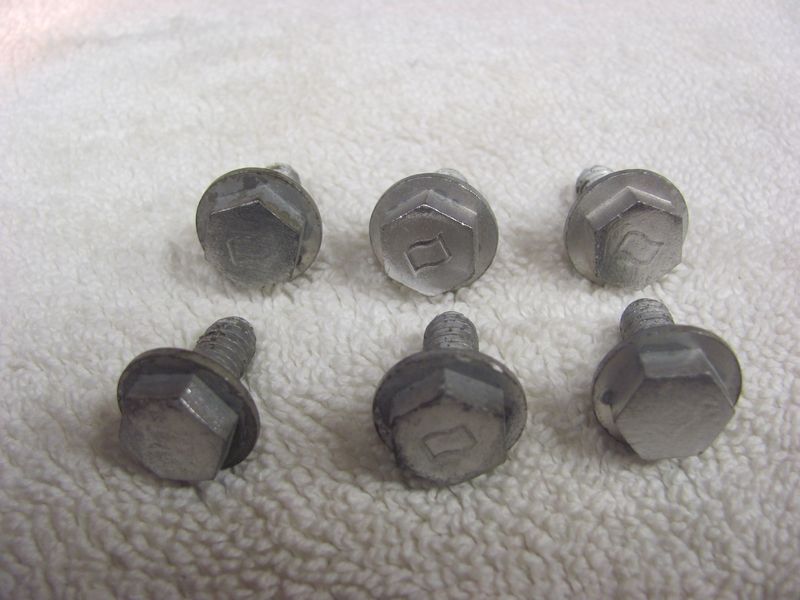 67-69 R/S Door shouldered bolts complete set of 6 (removed from a 67 many years ago. With Flag head LOGO Replated 40.00 shipped