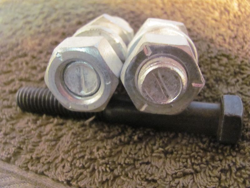 One Pair of very nice original restored drum brake anchor pins (with l stamp on the ends) Lock washers and Nuts (with 3 hash marks)