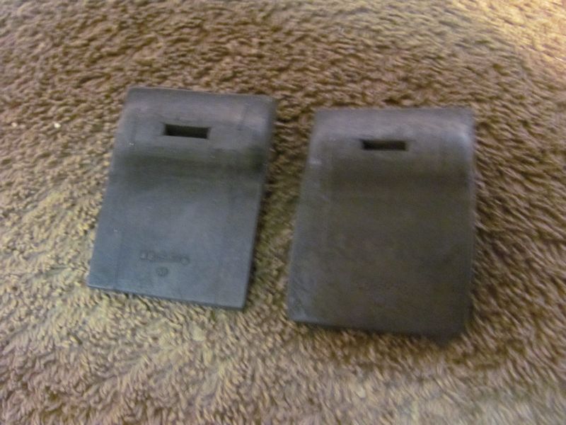 2. Pair of ORIGINAL RH LH 68-69 Camaro, Firebird, ChevyII and Nova Rear Spring Shock Mount Plates. HARD TO FIND ORIGINALS. MC E stamping minor pitting on the back that wont be seen when installed. The RH shock Hole needs to be welded and redrilled (easy fix) 150.00 3. 69 Camaro Firebird Rear Brakeline to body Mount bracket EXCELLENT CONDITION with manufactures LOZGO and Waffle marks on front from stamping. You wont find a nicer one!!! 50.00 4. 67-69 Camaro Firebird, 68-69 Nova ORIGINAL rear upper shock mount plates blasted and restored. VERY NICE 40.00 5. 67-69 Camaro, Firebird and 68-72 Nova rear inner rocker rubber drain flaps THEY DONT REPRO THESE. 100 a pair (2 pairs available) 6. ORIGINAL Flame arrestor SOLD 60.00 SOLD 7. Camaro Firebird ORIGINAL trunk torsion rod rubber 30.00 8. Camaro Firebird Nova ORIGINAL Fuel line clip (by gas tank) Repros don't have the raised step on the very top edge and the 2 lower corners are not flanged on repros. 50.00 each (1 SOLD 1 still available Both restored) ALL PARTS ARE PLUS SHIPPING |