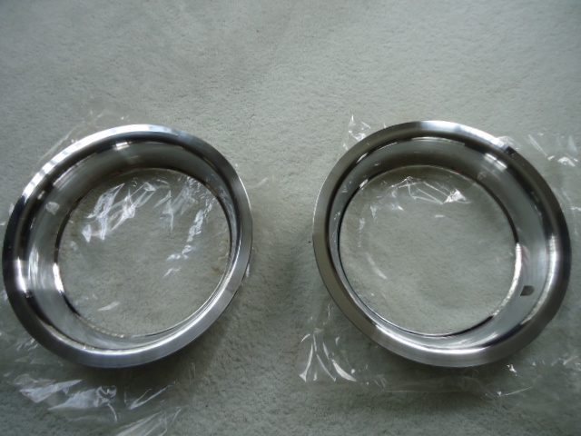 Two 15" dia. ABS plastic chrome plated wheel trim rings for rally wheels.