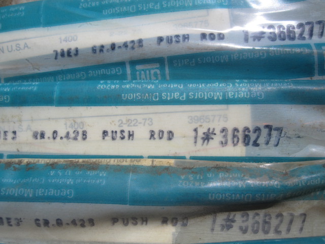 Selling 14 NOS SBC push rods part number 366277. The plastic packages are a little brittle but the push rods are in good shape. Have the blue paint on them as shown. There is a special parts notice in each one. Asking price is 56.80 shipped lower 48 USA. Larry 520-349-2337