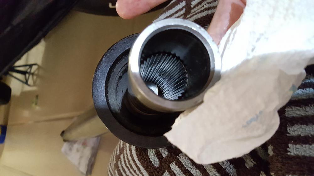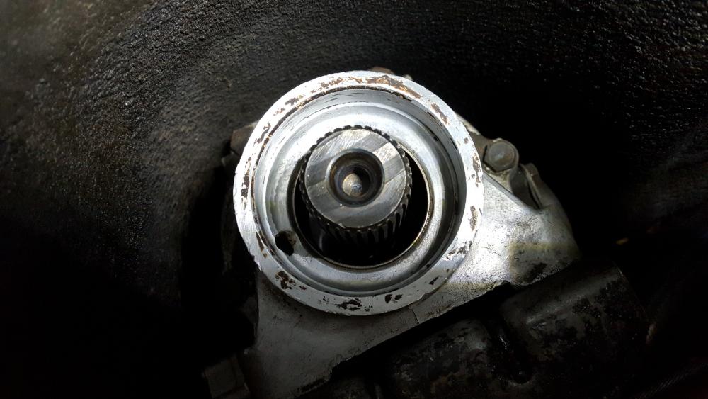 There does not seem to be excessive play in the rear shaft when the drive shaft is still in the trans, but the front u-joint made noise. When the drive shaft was on the floor, I noticed the front joint is very loose. I took a few pics. Am I missing something?
