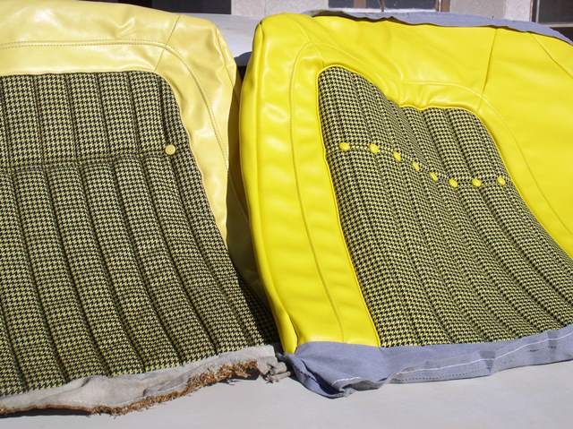 What's incorrect with the yellow and black hounds tooth pattern ? I'm aware all the yellow vinyl is re-dyed prior to assembly by the manufacturer(s) I've only seen 1 original yellow hounds tooth interior along with its yellow deluxe door panels. Was factory original yellow vinyl molded as yellow or also re-dyed ?