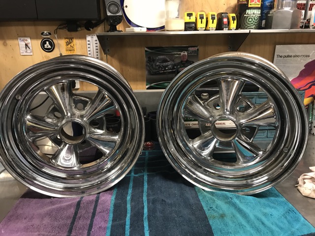 I managed to find these two 15x7's locally, dated '87 and never been mounted, reasonably priced, $300 for the pair (just over $200 in your money currently). They need a good clean and polish but should come up ok. Currently looking for a pair of 15x4's for the front which could take some time.