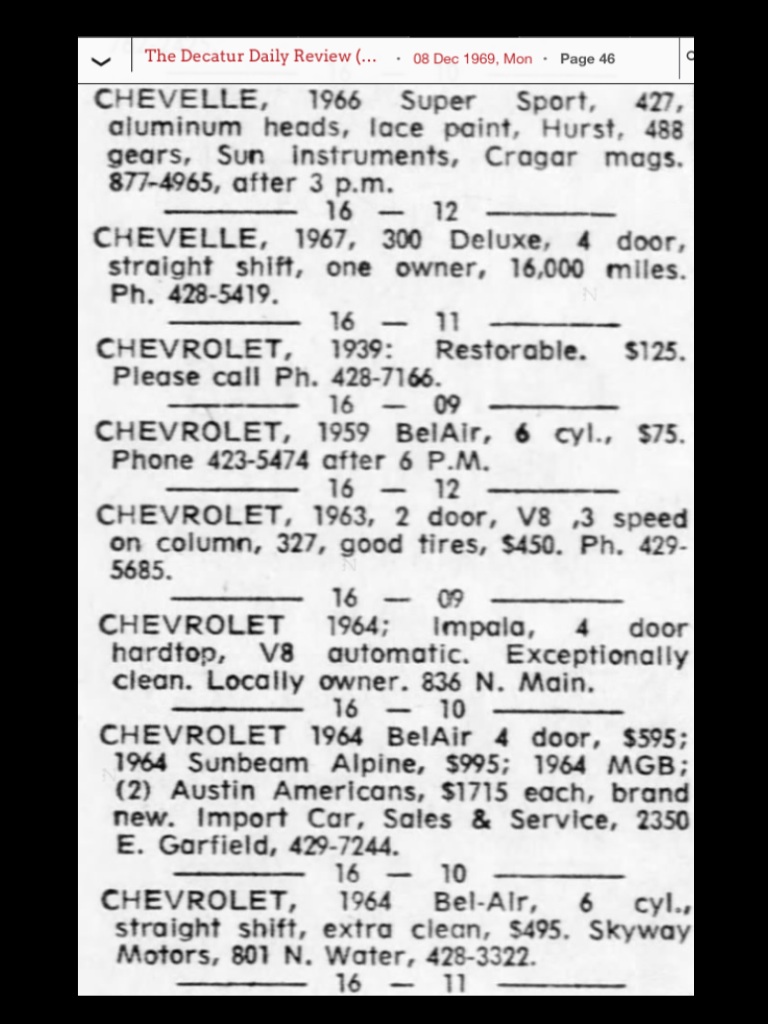 I remember looking through the Pittsburgh Press Classifieds when I was growing up, especially at the Hi Performance Cars section, and all of these ads bring back a lot of memories. Thanks for posting them up.