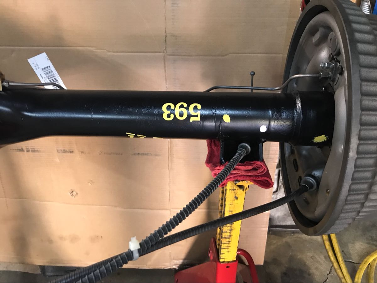 The image that looks like a paint spill is just that. When the rear end came out of the Evap o Rust there was a paint spill there. So I duplicated it.