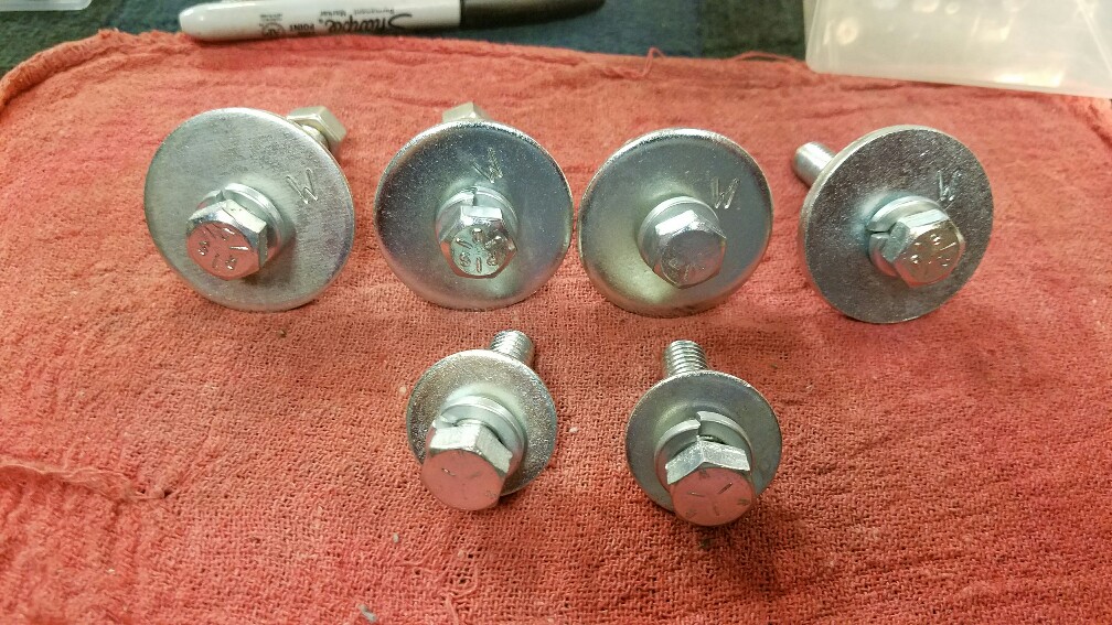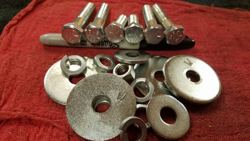 4 RSC body mount bolts 2 RBW radiator support Mount bolts 4 W stamps oversized thick body mount washers 2 special size radiator support Mount washers 6 heavy duty Square side lock washers 200.00 for the set shipped to the lower 48 |