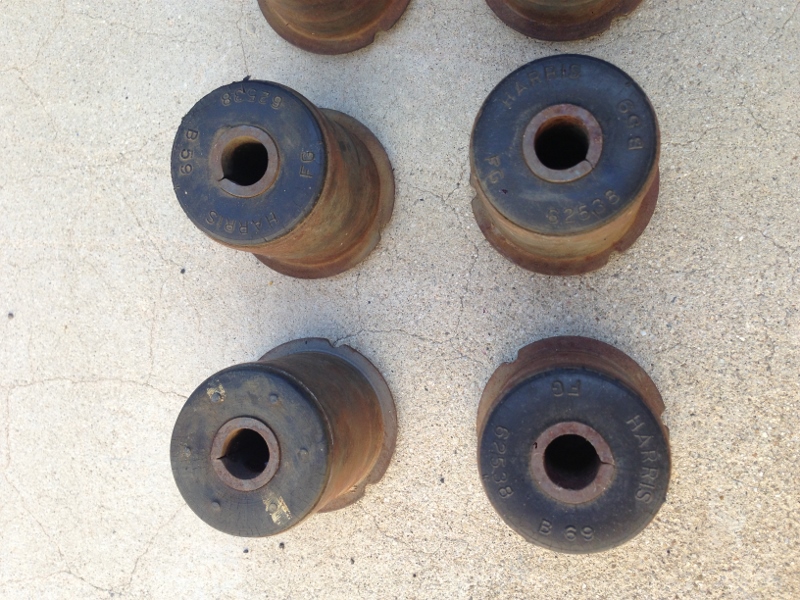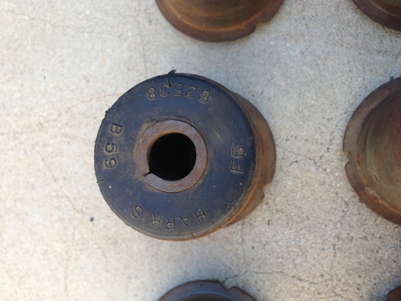 A full set of 8 NOS GM HARRIS 62538 rear control arm bushings for GM A Body vehicles 1964 - 1972. Boxes all got wet years ago, no boxes now, just the bushings - see the photos. GM part number 399941 Full complete set to replace the worn out or missing bushings in your driver or restoration; these are real GM NOS (new old stock) parts - they are old and the rubber has some checking but is still pliable - they are genuine and will work in all eight positions in the rear; upper and lower works on boxed or open arms. 1964 - 1972 Chevelle Malibu Buick Skylark GS GSX Oldsmobile Cutlass 442 W30 W31 GTO Lemans Tempest $90 F&F shipped to a paid member in the 48. I have a few sets. Thanks, Anthony |
