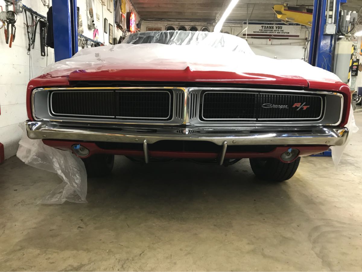 The shot with the vinyl top shows the body lead seam under the top. The fluorescent lights exemplify this. I am not so sure if this will bug me enough to rip the top off and send the car back to my paint man to smooth that seam out? I simply missed this when the car was at the body shop. I looked at my old pictures and sure enough the same “bulge” is there. I guess I did not notice as much because the top was 48 years old and the car had plenty of other ugly things going on with it. I have looked at several other restored Mopars and this lead seam under the top shows up but it does bug me. I wanted to restore the car as it was in late 68 so that is what it is.