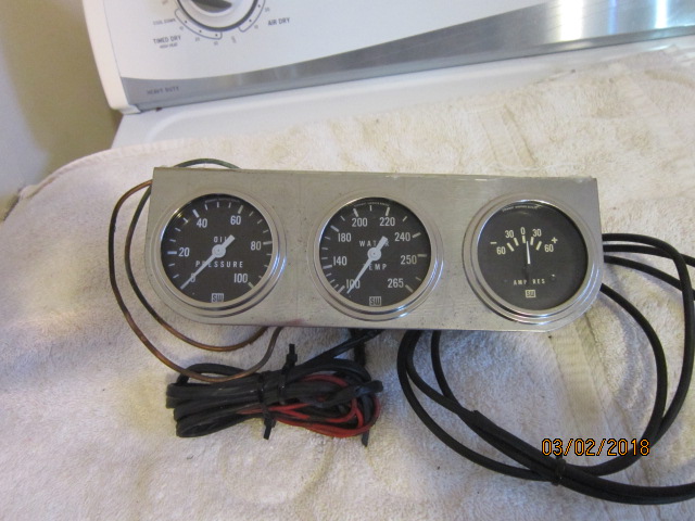One set of 2 3/4 face stewart warner gauges, water,oil,amps. The water sensor is missing, what i herd its a easy fix, the gauges face and frame are in excellent shape. all lights work, 300.00 plus 15.00 shipping