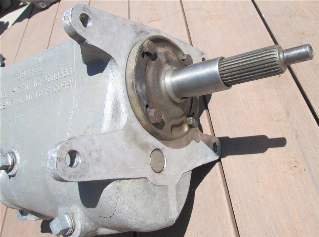 This transmission was recently removed from a 1963 Corvette that was being turned into a resto-mod style car with a LS engine and 6 speed trans. The car was running and driving and the transmission functioned well. This transmission has the fine spline input shaft with no grooves and the large turbo 400 style output as shown. There are no breaks or repairs to the transmission. The only modification I see is the shifter mounting holes have been oversized and the threads look great. The internals of this transmission are very nice with no chipped gears or other issues that I can see. This would be a great replacement transmission if your original is missing.