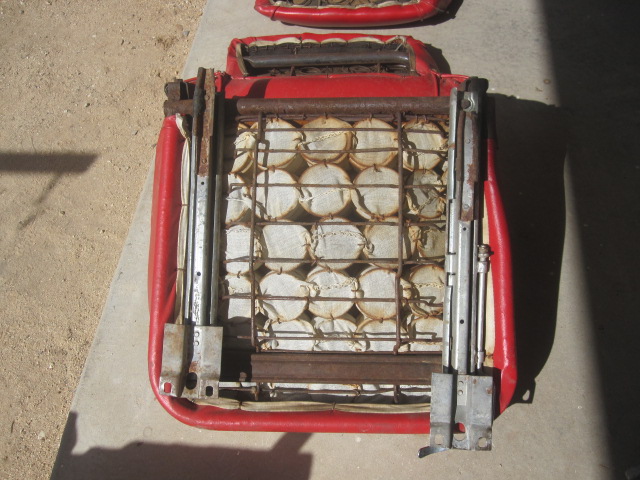 Selling a set of used bucket seats for a 61-62 Corvette. The one still has the part number and date code on the bottom as shown. Looks like original seat bottoms foam, canvas, springs. There is some rust as shown on the tracks and springs. Not sure as far as upholstery if they have been redone. Levers work as should. These have been in storage for years. Price is 1100 paypal ff shipped fed Ex ground to lower 48 USA. Larry 520-349-2337