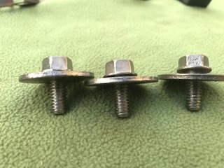 I have a set of three Chevelle battery tray bolts - we all know how extremely hard to find these little puppies are! Two of the three bolts have excellent threads with the same head markings. The last one has fair threads with a different head marking (see pics). $30. ncluding the ride to the lower 48 only. Payment thru Paypal FFT