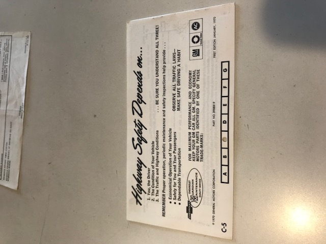 Mint 1970 Chevelle Owners Manual second edition November 1969. Includes original plastic bag dated 3-19-68, Chevrolet Consumer Information brochure, Gm Prevent Car Theft envelope, and trailer wiring Harness Instruction Sheet. Hard to find in this condition $250.00