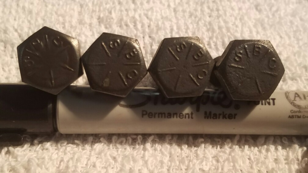 First step 3 complete sets of upper control arm mounting hardware with SBC grade 8 bolts and original GM bushing retainers with depression ring in the center. All excellent condition. $100 per set shipped to the lower 48. The SBC head marking is hard to find and was used extensively from 67 through 72 |