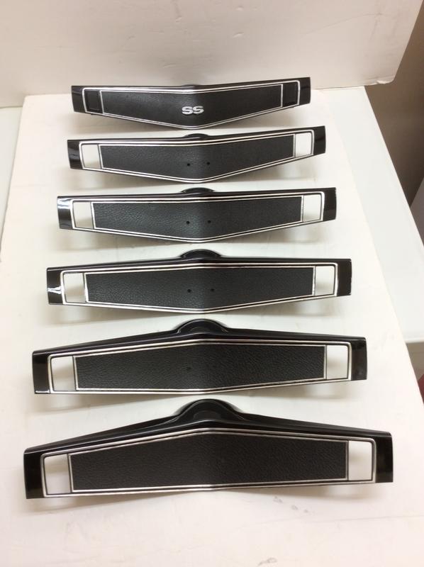 6 original 1970 GM restored black horn shrouds using the liquid chrome paint pen to do the accents as opposed to the silver paint pen. No repairs at all, just repainted, no broken screw or missing screw inserts on the back.