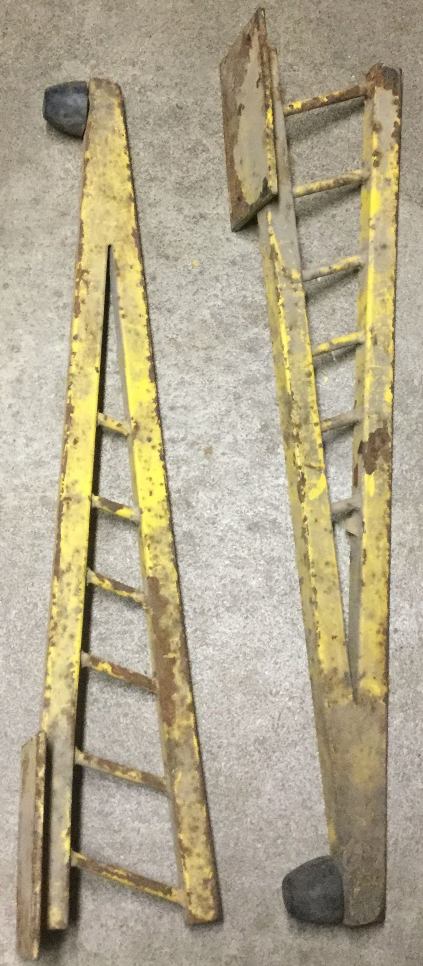Here's a picture of the mounting pads. I started stripping the one bar. Its interesting that two of the four mounting holes are welded shut, mainly because they interfere with the tubing on the underside. Also the bars are at an angle and not parallel to the mounting pad! I have seen this on some Lakewood style traction bars before so that might help explain what application they might fit?