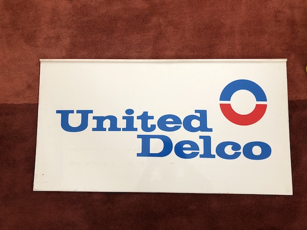 Very cool 1970s United Delco double sided sign. Very nice original paint and colors. 36x19. Recently bought from a long time collection. Asking $175 plus shipping.