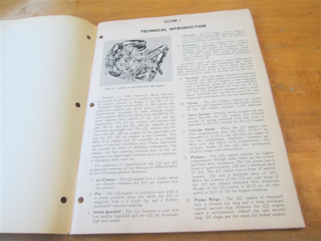 This is a Bill Thomas Performance Handbook from 1965. This book was produced the first year the Big Block Chevy engine was released and explained the design of this new engine as well as performance modifications, assembly procedures, etc. It also looks into Small Block Chevy and 409 engines. It is over 125 pages. It is very detailed with many diagrams and charts. It even gets down to things like water pump rebuild. This is a great introduction book to the Big Block Chevy and other engines. This book is very hard to find today since they were the go to book for answers on BBC engines. Because of this many are very well used with greasy fingerprints on pages, notes written inside etc.