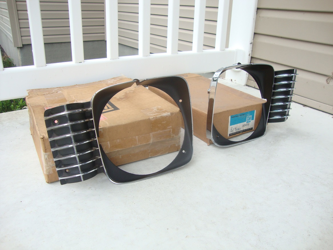 Matched pair of NOS GM 69-72 Nova headlight bezels. Part numbers are 3949789 and 3949790. Great shape. They just need cleaning and polishing from years of storage. One box is missing the GM sticker but it is a GM box. $250 pair shipped.