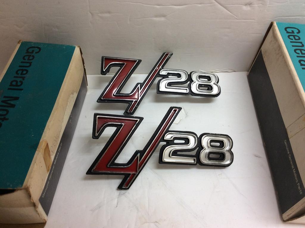 I have a complete set of NOS GM 69 Camaro Z/28 emblems that were bought from William's Chevrolet in Lebanon, PA in 1977. The set is missing the rear tail panel emblem. The Z/28 specific emblems all match the same color on the insert inside the red outline. If you buy singles off of eBay you may get white or silver, you have to be careful when you buy.