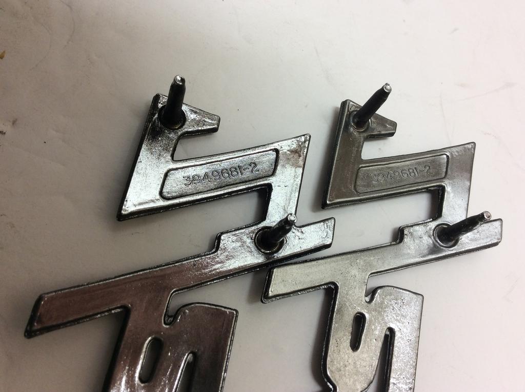 Looking at the backside of the two fender emblems, the original part number 3957936 is not there.