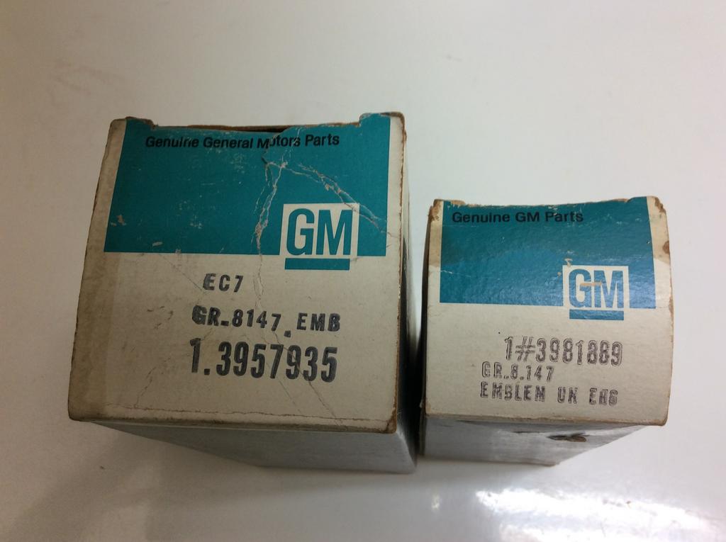 I have both fender emblem's, they both have the same p/n on the back. They came in the boxes shown, the one box does not look correct. I also had a box that I thought was the real tail panel emblem, but it had a 1970 Z tail panel emblem in it.