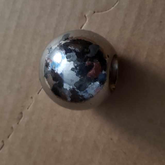 The ball has unrestored original condition chrome some chrome missing and marks from age and use The threads are good There are 7 spots where chrome is missing in about ¼ inch diameter sections The rest of the chrome has pretty good shine to it can be used as is on a survivor type Camaro or get it rechromed $200 plus shipping Send your zip code for shipping quote |