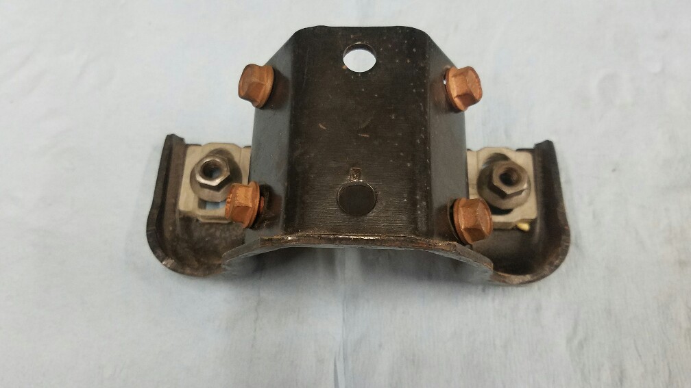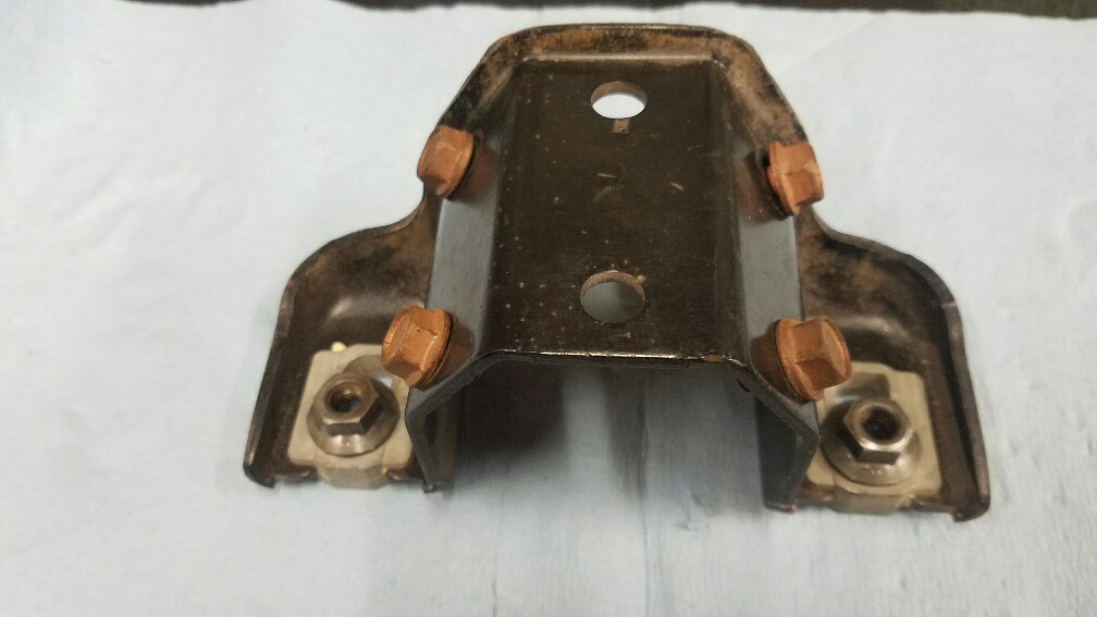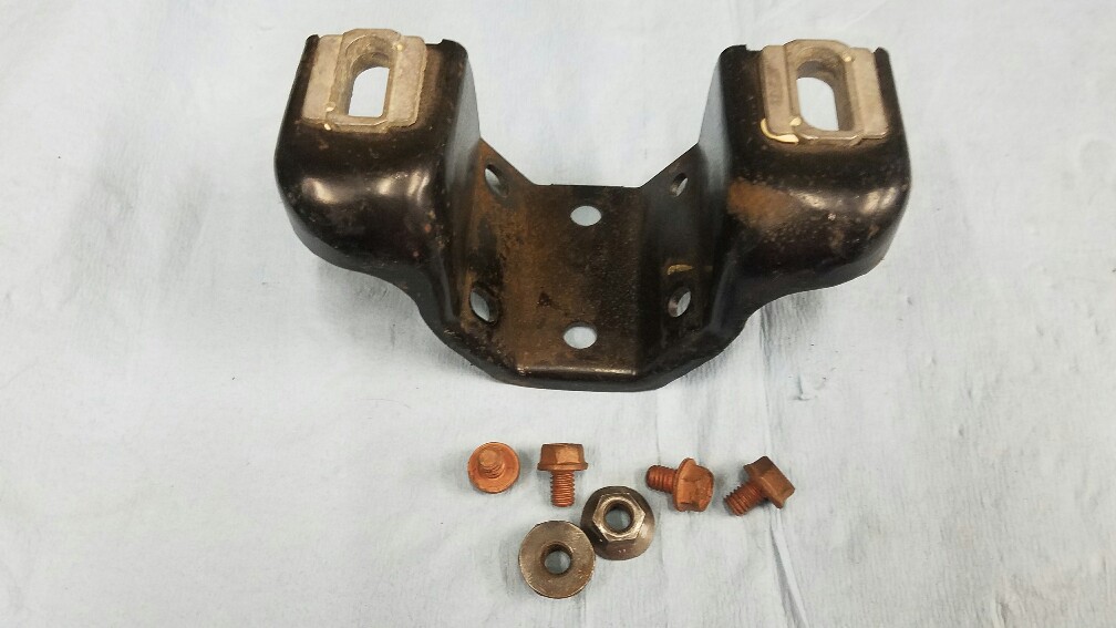 69 up column to brake pedal housing support bracket and mounting hardware. All completely original untouched and unrestored. Double dash marked nuts and WB stamp bolts. Very nice piece. $80 plus $8 to ship.