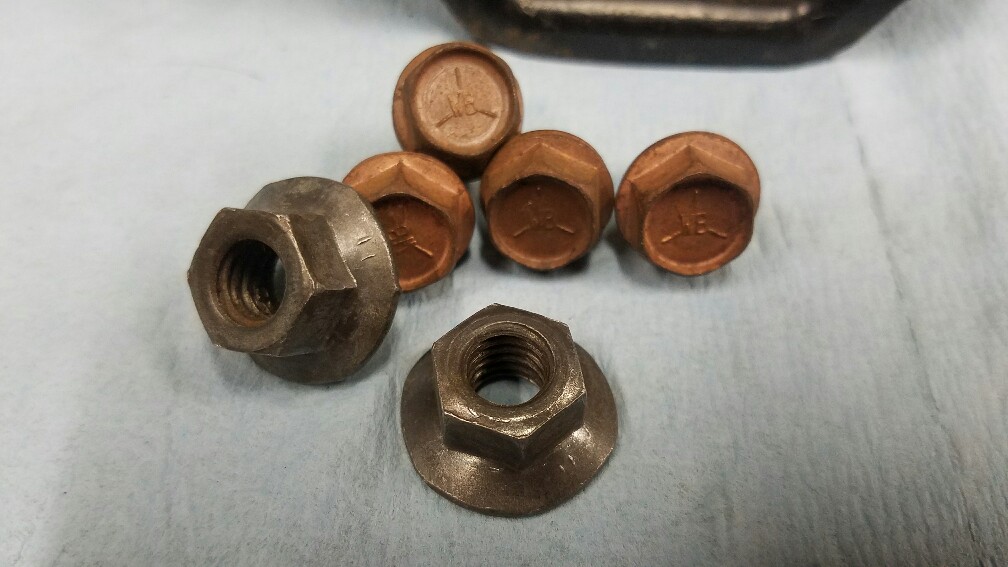 First up 69-up column + brake pedal housing mounting nuts. These are unique 3/8 16 hex nuts with a wide thick flange. Used exclusively for this application. I have several different head markings available. = (light font) $40 a pair (multiple sets available) = (heavy font) $40 a pair (multiple sets available) 3 (l) lines $40 a pair (1 pair available) 3 dots $40 a pair ( 1 pair available) RBW $60 a pair (only 1 pair available) Last edited by Enoch; 09-09-2019 at 06:06 PM. Reason: Parts sold/moved |