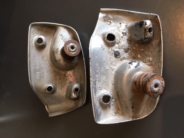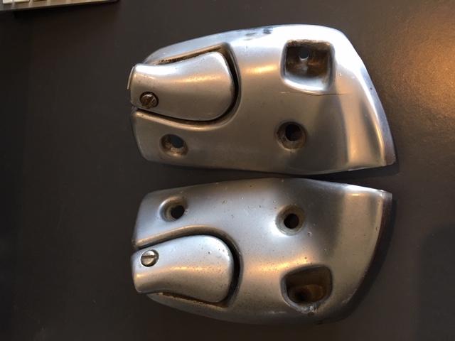 Two blue visors and L&R brackets. Visors are ok shape, plenty of scratches and marks on the visors, mount brackets are a bit rough as well. One bracket has a small crack, mount holes look like there opened up a bit. If you have a driver and there missing, these might be for you. $35.00 plus ship. Total length 20 3/8.