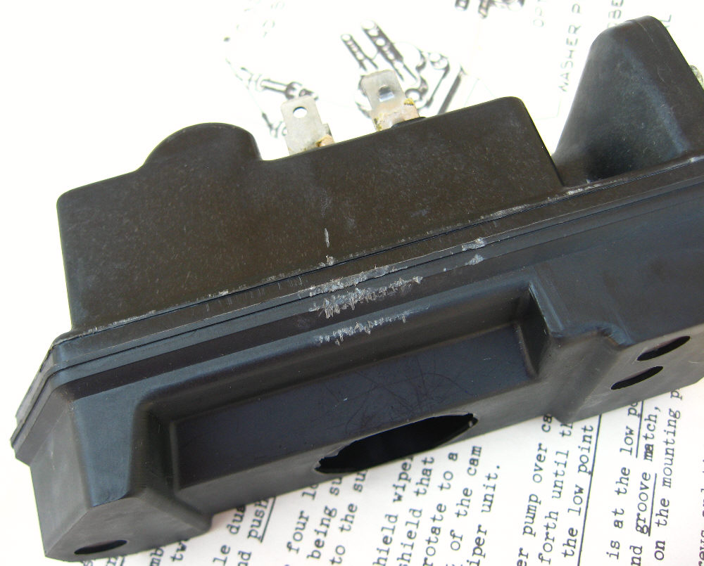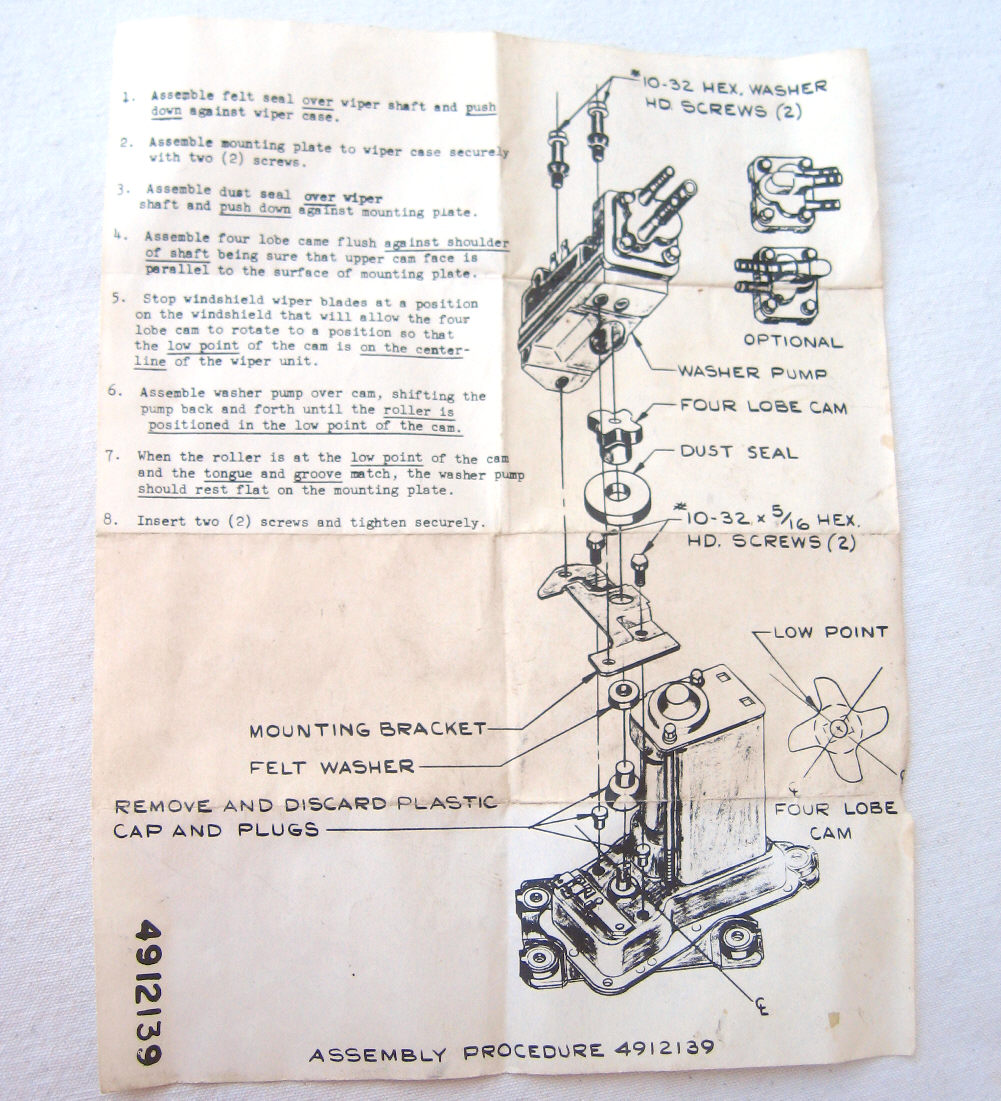 NOS GM washer pump assembly. This is the real deal Vintage NOS 2-piece cover clear head design used by GM up to 1968 and on some 1969 models. Very hard to come by. It is 50+ years old and made back in the 1960s by GM. Discontinued by GM 1/1970.