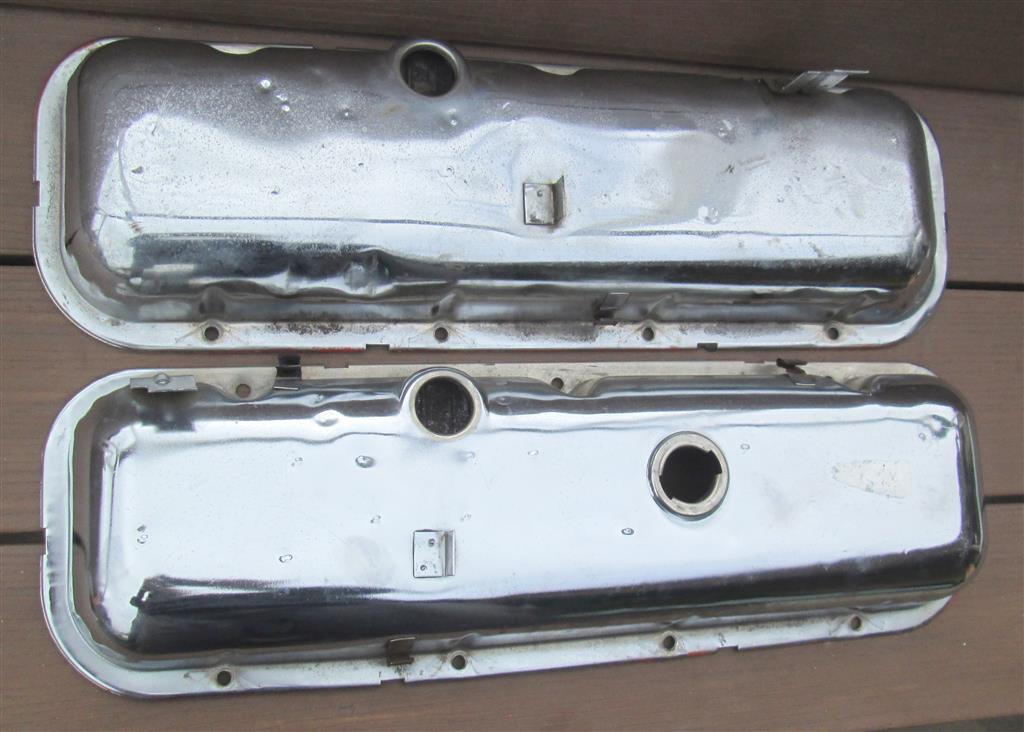 These covers are in good original survivor condition as shown. I gave them a light, non-abrasive cleaning to remove dirt and debris without altering the original finish. The edges of the covers have what I believe to be factory orange overspray as shown in the pictures. The passenger side cover is very clean with nice original chrome. It has 2 wiring clips on the intake side and one on the exhaust manifold side. The driver's side cover has one clip on the exhaust manifold side and none on the intake side. The chrome on this cover shines well with pitting. This cover has a couple dents on the outer edge as shown. They will likely come out but I didn't want to do more harm than good. I left the insides of the covers untouched as shown. The insides are nice with no rust or damage. There are reminants of what appear to be the original gaskets. These covers would be right at home on a survivor type car. They would also be very straight forward to restore. Real deal 1970 only covers are becoming very hard to find in any condition. I have these covers listed as an auction on Ebay starting at $9.99 with NO RESERVE. The auction ends Sunday 6/29 at 7PM Pacific Time. Here is a link to the auction: https://www.ebay.com/itm/372692081382 I am offering free shipping in the US and $20 off international shipping to paid members. If you win, please send me a PM and I will send an invoice with the corrected shipping through ebay. Thanks and good luck, Jason |