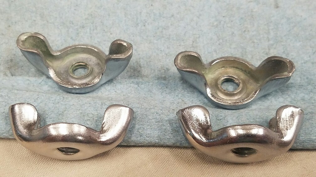 This is my third and final batch all others have sold out. I have several more large flat Wing nuts. They are in excellent condition. Still have stamping marks and stress marks from the metal in forging. Very nice Chrome. Sale price $50 each ppff