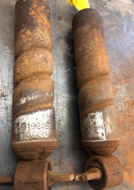 Looks like they are dated for a 1969 Chevelle but they actually came of a 1970 SS 454 LS6 car Dated Late December, just goes to show GM used Left over earlier stock, will be correct for a very late built 1969 Chevelle IMO. Shocks have no leaks install "AS IS" for a "Survivor" or Blast them for a new finish. These shocks are very Rare to find. $350 USD plus $20 Shipping out of Wisconsin