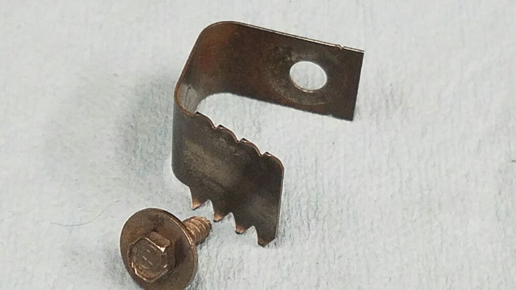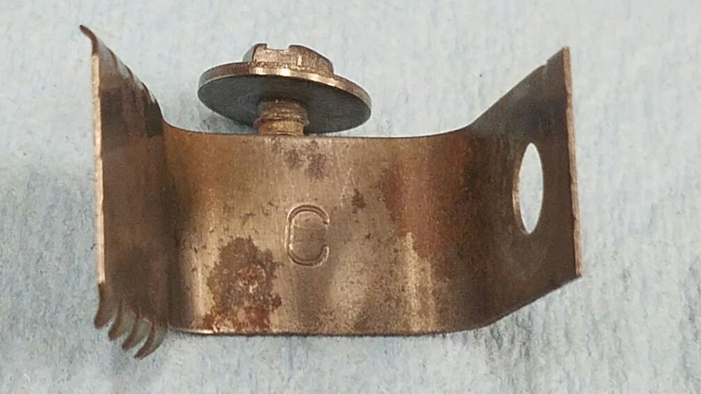Cowl to hood ground plate (C stamped) and mounting bolt (R). Very nice condition. $40 ppff