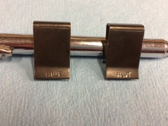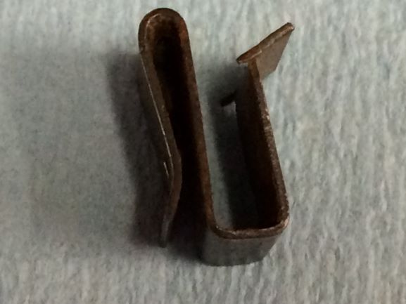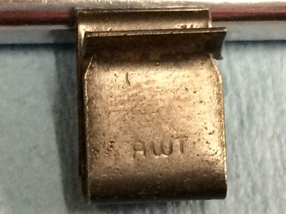 Original fan shroud mounting clips. The 2 with the AWT stamping on the lower flange are NOS and are $30 each.