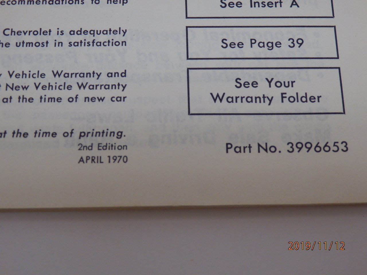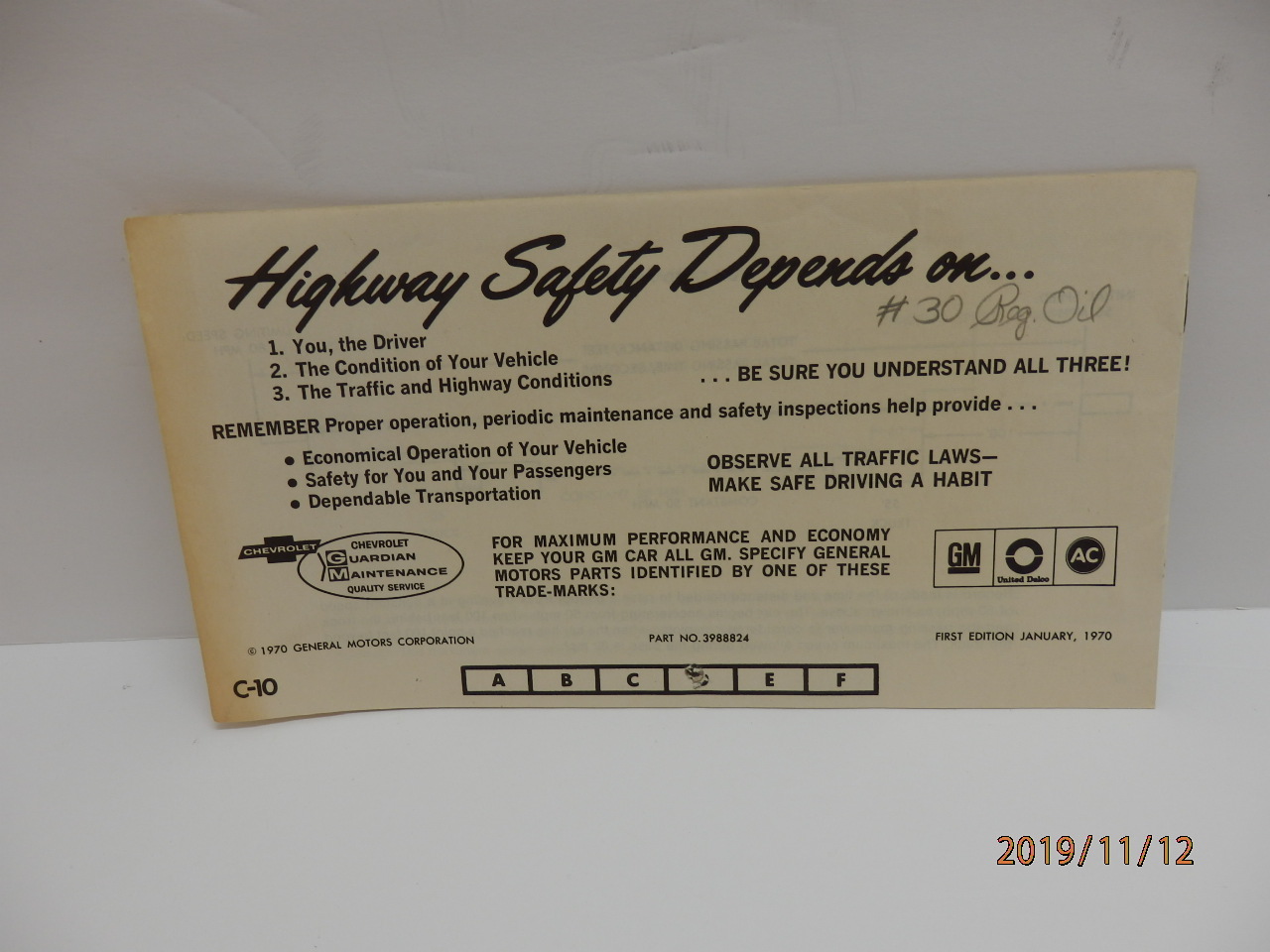 This is a very nice original 2nd edition 1970 Camaro Owners Manual, also included is an 8 page Consumer Information insert.