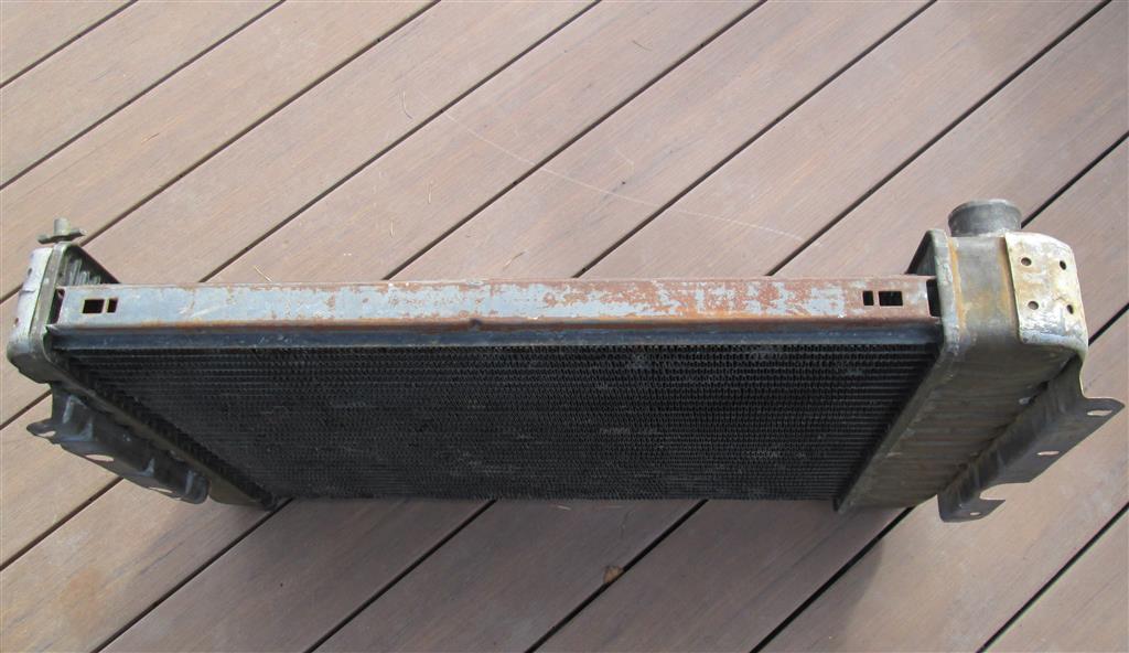 This is an original Harrison 3 row radiator for a 1967-1968 Camaro with a 396 engine and manual transmission. The tanks are coded OL and IL as shown and the date code is L which I believe is December. This radiator was found in a storage locker that was auctioned off due to unpaid rent so I don't know much about its history. I appears to have been hot tanked as is it very clean and has no paint on it. The tanks and brackets are very clean as shown. The core also looks nice other than some tweaked fins that should straighten nicely with some time and patience.