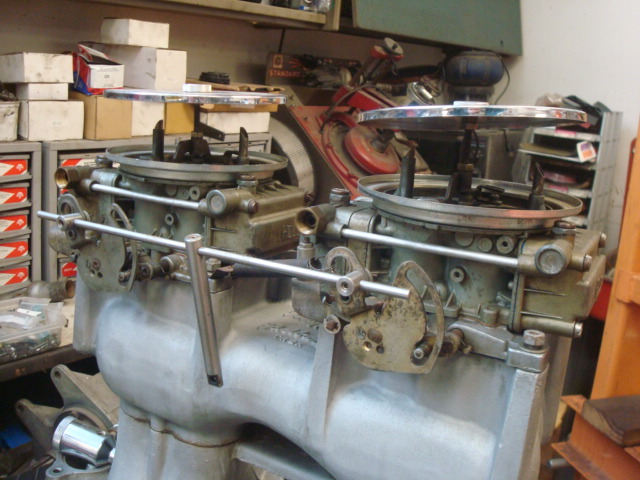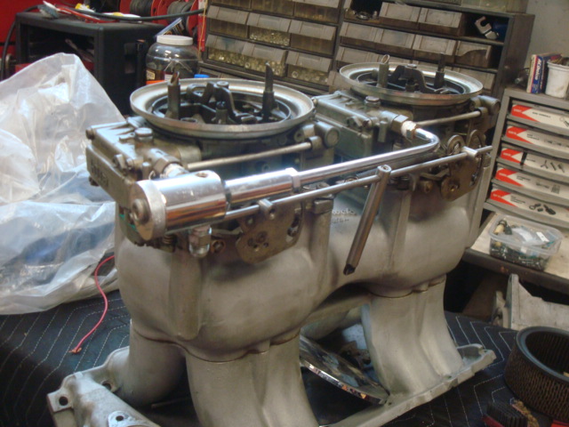 This is a vintage late 70s tunnel ram setup. There is a Edelbrock big block Chevy rectangular port intake number TR2X. Holley 660 center squirt carbs, linkage, fuel line and air cleaner top and bottom. The setup was taken off a car about 8 years ago and ran fine. The carbs should be checked but probably ok. 850.00
