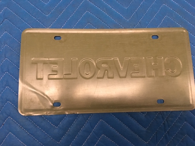 1972 Chevrolet Heavy metal Plate. Has a little damage on one corner. 125.00 free shipping. Thanks Dave.
