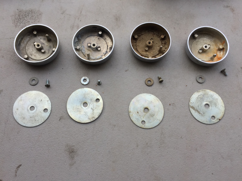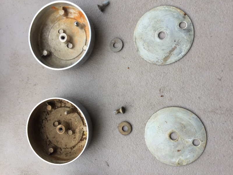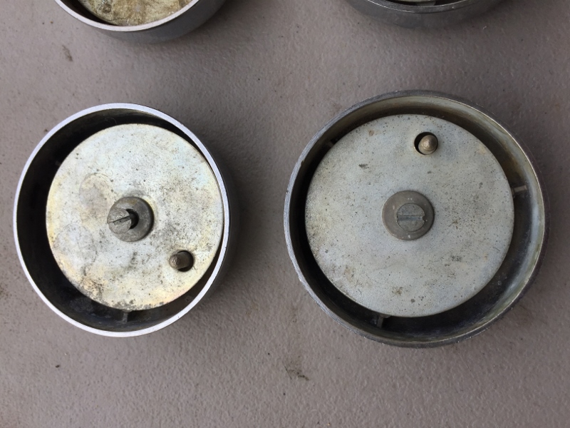 They're not NOS, but rather cared for / low mile originals until they sat outside for a while - one's dirtier than the rest, but I left them all as-is so you can decide whether to run them as is or polish them up a bit... Nice pieces IMHO. Includes original screws and plates. No broken nubs. the USA made versions - retainer plates stamped 27110 not Made in Taiwan... $220 PPFF shipped to the 48 Thanks all, be well. Anthony |