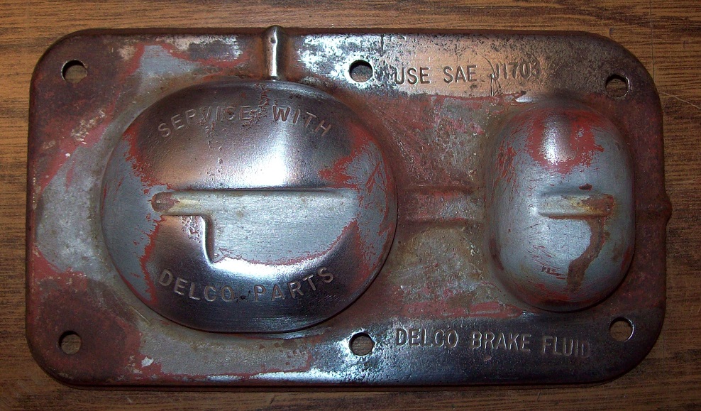 Very hard to find these caps with nice crisp clear stamped letters and numbers. Will clean up nicely once restored and re-plated. "Service With Delco Parts Use SAE J1703 Delco Brake Fluid" $175 USD plus $9 Shipping from Canada. Paypal "Friends"