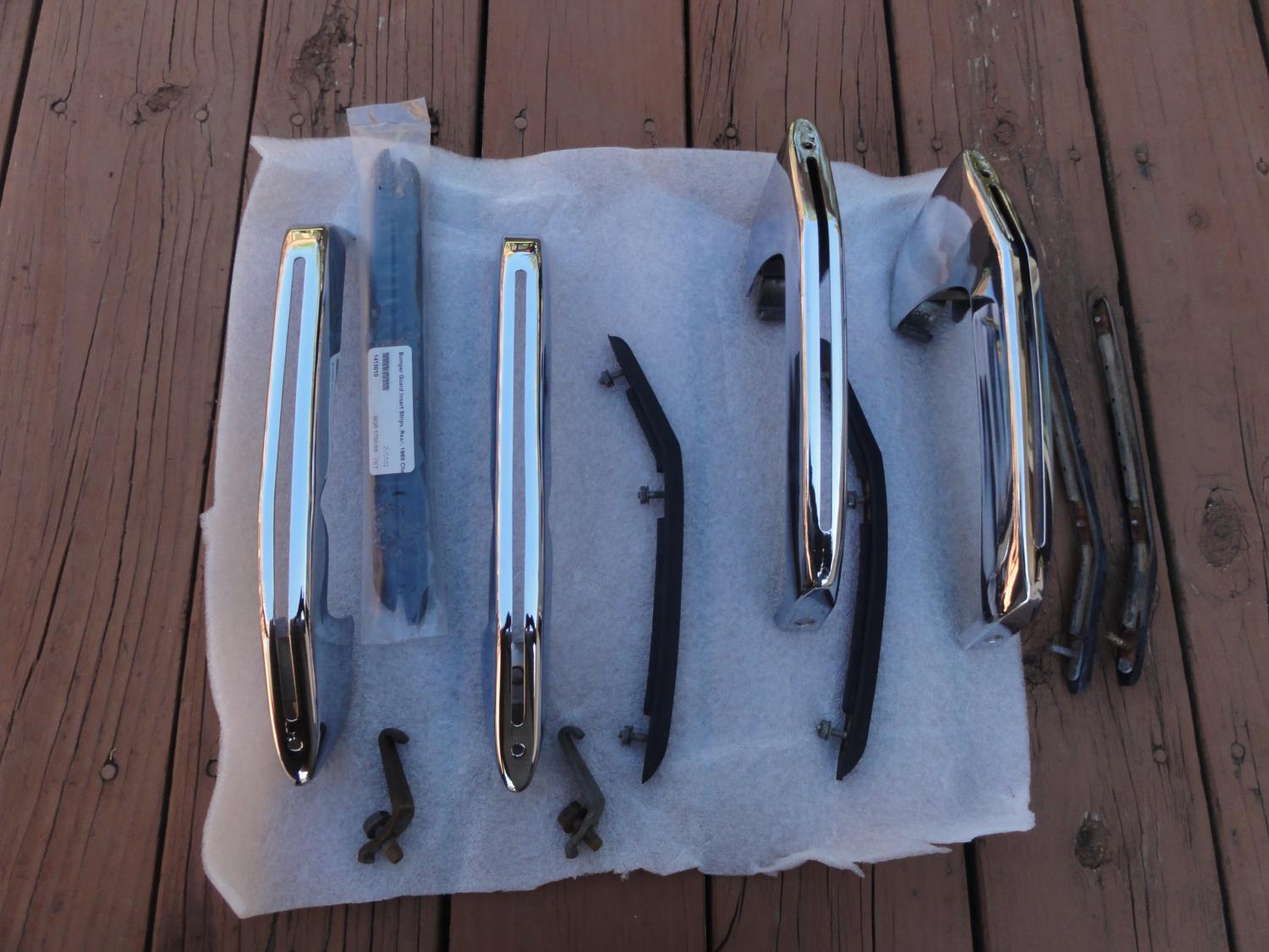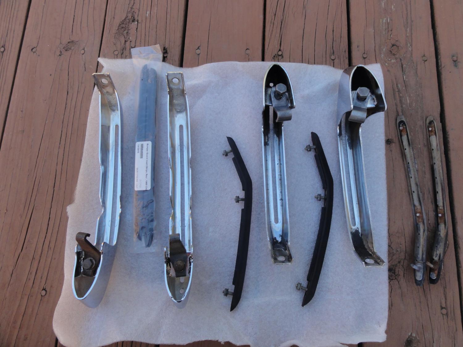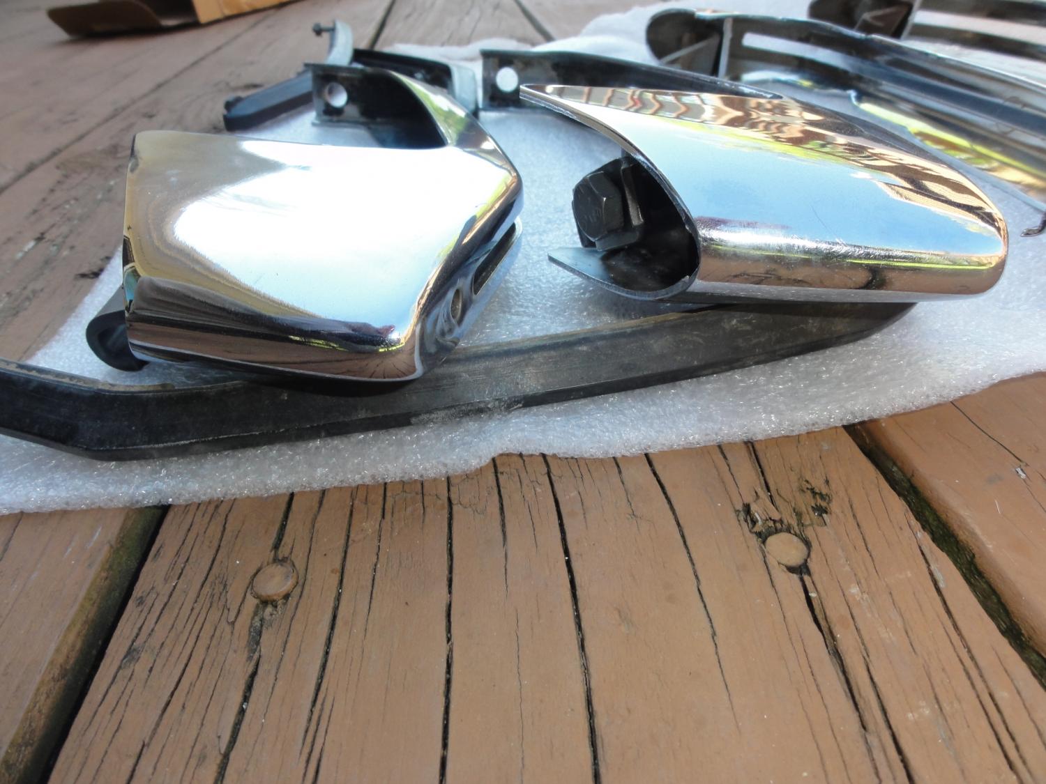 Original 68 Chevelle SS & Malibu Front and rear bumper guards. Fronts are original chrome with NOS rubber inserts . I Used the original nuts on NOS inserts. Orig. Chrome in nice condition has age imperfection but overall decent. You could rechrome but that is up to you .Rears have been rechromed excellent condition & New reproduction rubber inserts included. Both sets have original mounting brackets and hardware. 575.00 plus shipping