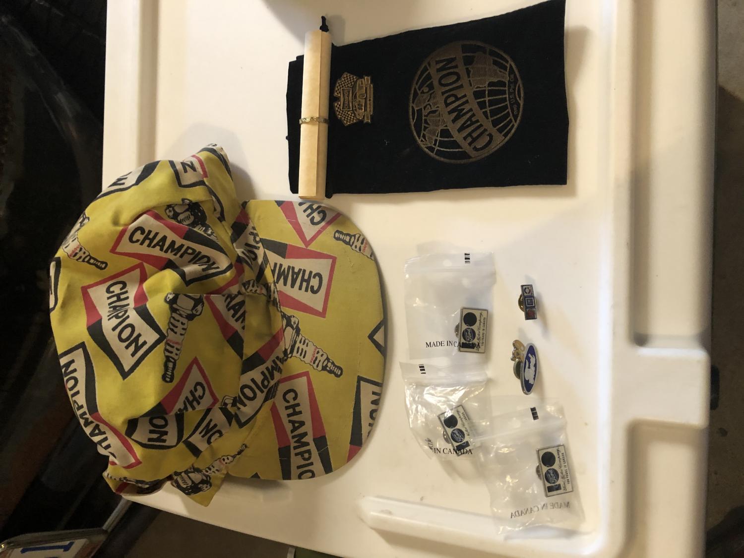 Included is a Champion hat, champion pin, bag and pamphlet, and ford and GM pin See pics. Can send more if needed. Asking $85 us shipped for all |