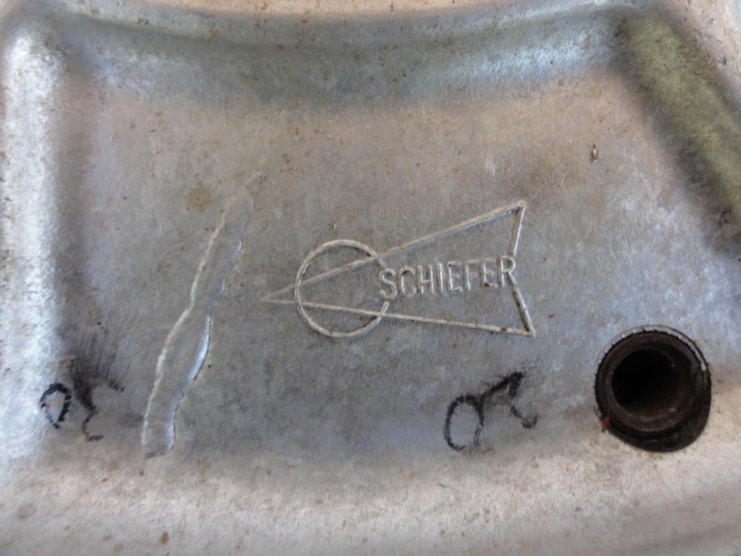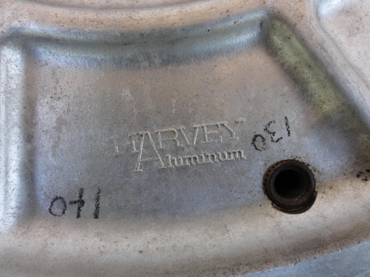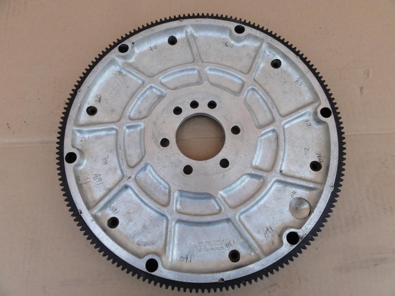 Vintage Schiefer GM Aluminum Flywheel 168 teeth Fits 10,5 & 11" clutch BBC,SBC Never Installed.Drilled for both 10.5 clutch (5-13/16" hole spacing and 11 5/8 diameter) 11" clutch (6-5/16 hole spacing & 12-5/8 diameter) 14" Outside diameter. 2.475 approximate diameter center hole. Weighs 11 lbs. Stamped #824 &2208 Casting Pat. 2719438 and Harvey Aluminum Teeth are excellent. Face has shelf wear scratches . I would do a skim refacing to make sure it is true. 450.00 Plus shipping