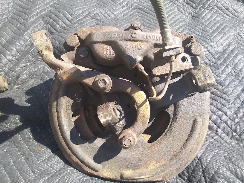 Asked 850 Best offer was accepted. For sale is an original GM front disc brake set takeoff from a 1967 Camaro L78 that I believe is a pro-touring build. I was going to use these on my car but I found a set of rebuilt calipers and figured this front disc brake set should stay together for another car. This kit needs restoring but looks to be all there with exception of a missing bracket to caliper bolt, and two washers for the bracket to caliper bolts on that same side. Both sides look to have original GM parts including calipers with no repairs, two piece rotors, spindles, brackets, brake hose brackets, hardware, and power steering arms. I'm by no means an expert when it comes to restoration work but this looks to be a really nice candidate for a restorer looking for an original GM front disc brake set. PM me if interested. Thank You. SOLD Jose Last edited by jbtech; 08-25-2020 at 04:20 PM. |