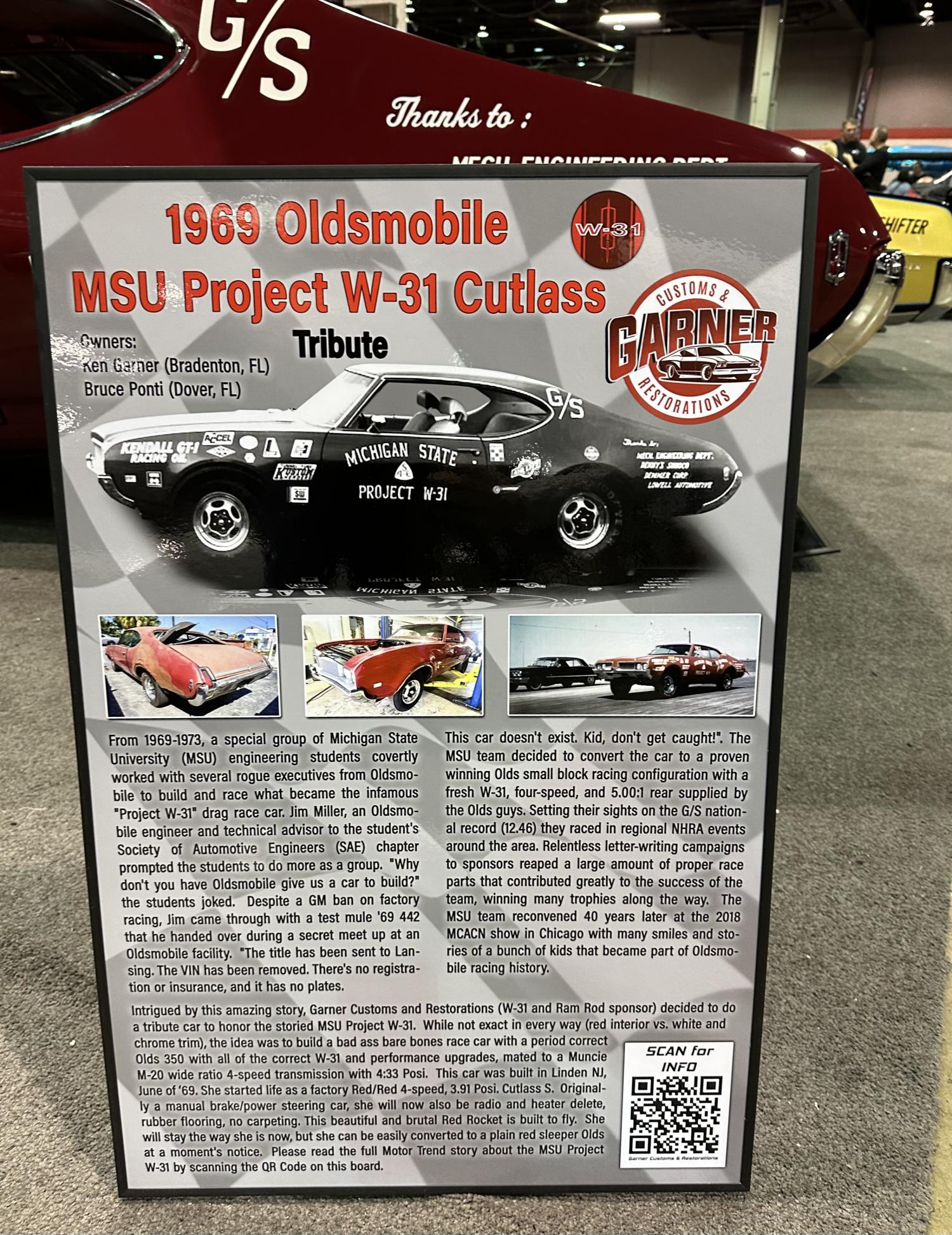 Hello car folks. I have exciting news. The MSU Engineering students that built and raced a 1969 Cutlass S (started as a 442) Holiday Coupe W31 have decided to recreate the drag car of their youth. This is in the initial phases so all the details have not been hammered out. The perfect project car is the most important step to get things going in the right direction. The perfect Project W31 project car would tick all the #1’s from the check list below. Having said this we are very interested to know what people have to offer. This project car will be modified to recreate the original MSU Project W31 drag car. Car: #1:1969 442 Holiday Coupe #2:1969 Cutlass S Holiday Coupe (must be titled) Body: #1:Zero rust #2: Southern or California car with very little rust only in typical spots Paint: #1:Code 52 Crimson Red #2: Any other exterior colour Chassis: #1:Restored/Rebuilt #2: Original Interior: #1: Code 937 White Bucket seat interior #2: Any other interior colour Drivetrain: #1: 1969 W31 350/325HP, Muncie M20 4 Speed, O Type Anti Spin 5.0 gears #2: Roller Post or PM what you have. Ryan W31